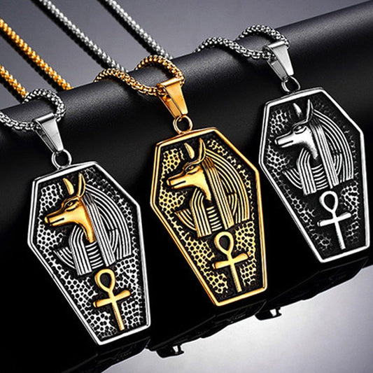 Collier Égyptien<br> Cercueil Anubis (Acier)