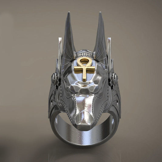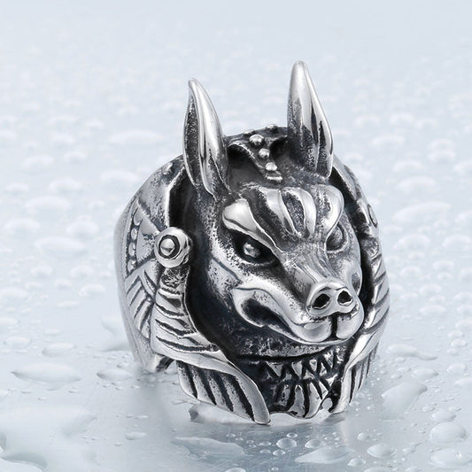 Bague Égyptienne<br> Anubis en Colère (Acier)